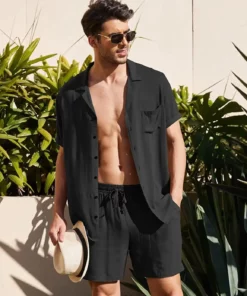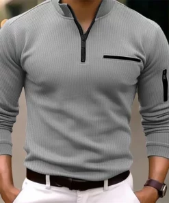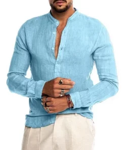 Men’s Shirt V-neck Stand Up Collar Long Sleeved Loose and Breathable Business Casual Cardigan Top